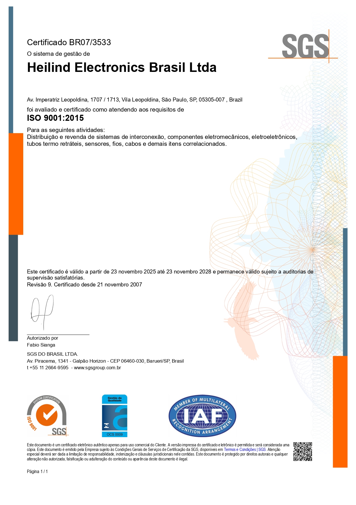 – ISO 9001:2015 Heilind Electronics Brasil.